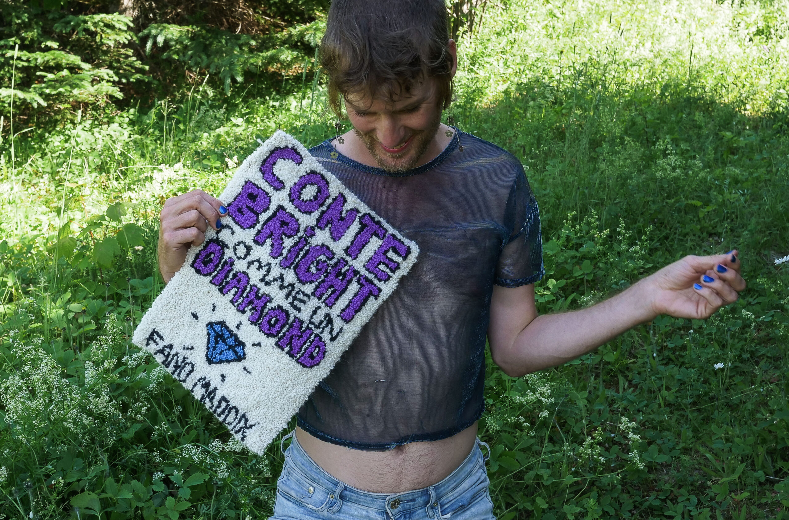 Conte bright comme un diamond est basé sur un conte folklorique acadien vieux de plusieurs millénaires, présenté dans une forme contemporaine par Fano Maddix dans son dialecte, le chiac. C’est du folklore original : les vraies péripéties et personnages du conte sont préservés, mais dans une atmosphère féérique et surréelle. Fidèle à l’art de la parole, la conteux s’adresse directement au public et improvise sans texte, navigant à travers plusieurs rebondissements magiques. À ses côtés, la compositrice et violoniste Abèle Kildir crée sur scène des ambiances hyperpop et enchantées. Conte bright comme un diamond est une invitation à se laisser toucher par un conte ancien et à vivre une expérience de (re)connexion collective avec la tradition orale acadienne. Parce que le folklore care pas ce qu’anyone dit : il sait qu’il est glorious, intemporel et queer.